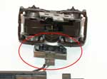 Come si può vedere nella seguente immagine ingrandita, su una delle due staffe che sorreggono ciascun carrello è inserito un piccolo distanziale in materiale plastico che ha la funzione di isolare una presa di corrente dall'altra. Se non ci fosse questa piastrina isolante si creerebbe un cortocircuito, in quanto la corrente dell'altro polo giungerebbe direttamente al telaio metallico attraverso l'altra staffa. È inoltre fondamentale ricordarsi la loro esatta posizione durante la fase di rimontaggio (le piastrine non si possono montare sull'altro lato del telaio).