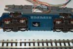 Per avere una migliore captazione della corrente, occorre saldare un filo che unisca elettricamente i due carrelli che hanno la piastrina isolante, come mostrato nella figura seguente (circoletti verdi).