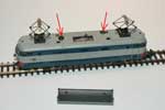 Prima di rimontare la loco è possibile togliere la presa di corrente proveniente dalla linea aerea, semplicemente svitando le viti che fissano i pantografi e togliendo il filo di ottone. Successivamente è anche consigliabile aggiungere un pezzo di nastro isolante sulla testa delle viti, per evitare falsi contatti nel caso di linea aerea alimentata.